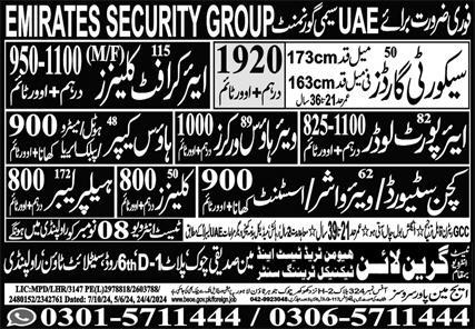 Edge Manpower Services jobs advertisement dated about 6 November 2024 in daily Express Newspaper invites application for the vacant post of Helper Labor, Warehouse Worker, Cleaner, General Assistant, Airport Loader, Security Guard, House Keeper, Ware Washer, Aircraft Cleaner, Kitchen Steward and Female Security Guard in UAE, uae UAE. Preferred Education is Intermediate, Bachelor, Middle and Matric etc.