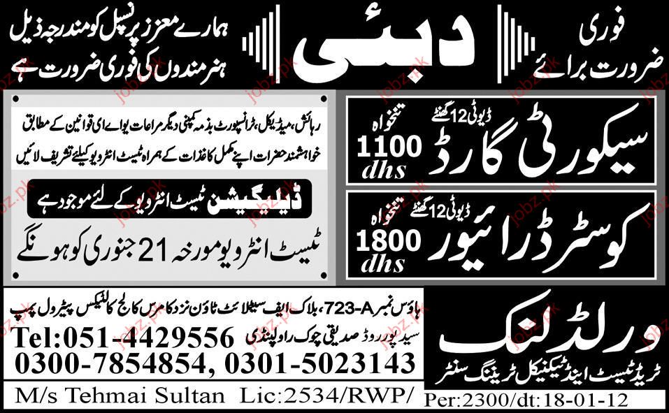 Security Guard And Coaster Driver Job Opportunity In Dubai