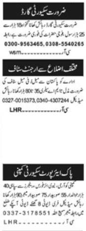 Private Company Lahore, lahore and islamabad Punjab Pakistan invites applications from eligible candidates for the post of retired sepoy, male female staff, retired havaldar, retired subedar major, security guard and retired subedar as per advertisement of January 6, 2024 published in daily Khabrain Newspaper. Candidates with Bachelor, Middle, Master, Matric and Intermediate etc. educational background will be preferred.