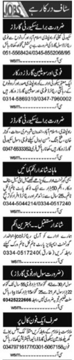 Private Islamabad, islamabad Islamabad Pakistan invites applications from eligible candidates for the post of civilian gurad, cook, driver, house servant, fauji guard, electrician, office boy, security guard and retired government staff as per advertisement of December 16, 2022 published in daily Khabrain Newspaper. Educational qualifications required Intermediate, Primary, Bachelor, Middle and Matric etc.