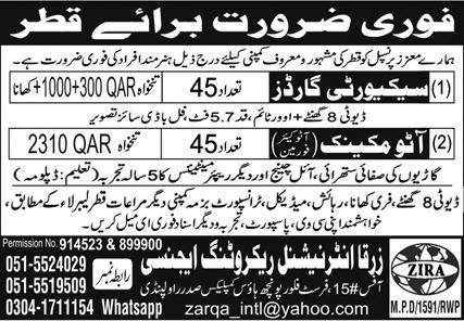 Security Guard & Auto Mechanic Jobs 2022 In Qatar