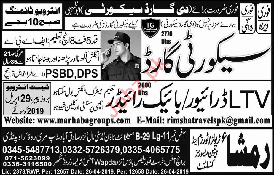 Latest Ramsha Travel Tour & Human Service Consultant Labor Posts Abu Dhabi 2025