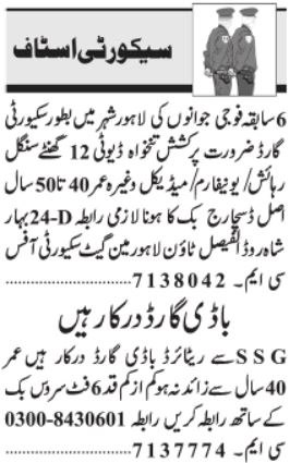 Security Company invites applications for job positions advertised in daily Jang dated 28 September 2023 for following vacancies in Lahore, lahore Punjab Pakistan.