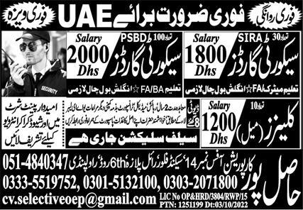 Hasilpur Corporation is looking for candidates for following posts as per job advertisement published in daily Express Newspaper of October 5, 2022 for location Sharjah, abu dhabi UAE: