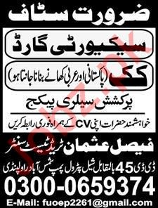 Security Guard & Cook Jobs In Faisal Usman Trade Test Center