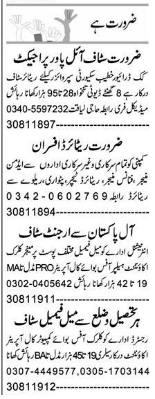 Private Company Faisalabad, faisalabad Punjab Pakistan invites applications from eligible candidates for the post of security guard, cook, call operator, office boy, accountant, patwari, manager, security supervisor, clerk, finance manager, driver, helper and teacher as per advertisement of April 2, 2022 published in daily Express Newspaper. Candidates with Middle, Intermediate, Matric and Bachelor etc. educational background will be preferred.