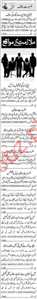 Computer Operator, Call Operator, Customer Relationship Officer CRO, Assistant Manager, Branch Manager, Receptionist, HR Officer, Supervisor, Assistant Supervisor, Account Manager, Office Assistant, Receptionist, Clerk, Naib Qasid, Watchman, Sanitary Worker, Security Guard and LTV Driver required in well progressive companies.