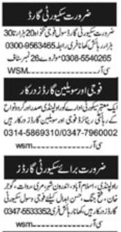 Security Company jobs advertisement dated about 15 September 2023 in daily Khabrain Newspaper invites application for the vacant post of civilian guard, security guard and fauji guard in Islamabad, gujar khan, murree, hassan abdal, fateh jang and rawalpindi Islamabad Pakistan. Candidates with Intermediate, Matric and Middle etc. educational background will be preferred.
