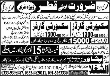 Latest Peshawar Trade Test & Technical Training Center Security Posts Qatar 2025