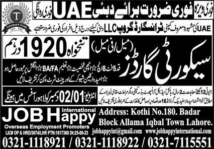 Latest Job Happy International Overeseas Manpower Employment Promoters Security Posts Dubai 2025