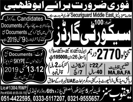 Vacancies in Yaqoob Sons Advertisement May 2019