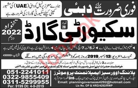 Latest Planning Overseas Employment Promoters Security Posts UAE 2025