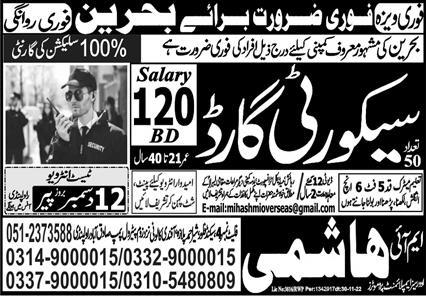 Apply at MI Hashmi Overseas Employment Promoters latest Overseas jobs in Security and departments before closing date which is around January 12, 2023 or as per closing date in newspaper ad. Read complete ad online to know how to apply on latest MI Hashmi Overseas Employment Promoters job opportunities. Earn extra money with overtime. Facilities like accommodation, medical and transport may be provided.