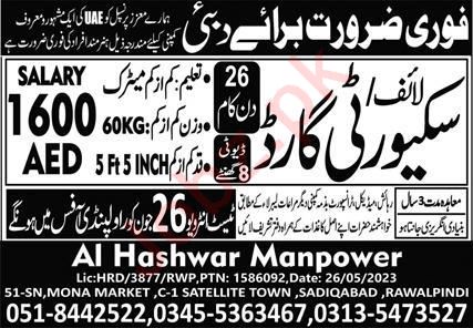 Vacant posts including security guard are announced in Al Hashwar Manpower UAE, dubai UAE as per 25 June 2023 advertisement in daily Express Newspaper. Preferred Education is Intermediate and Matric etc.