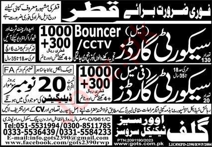Vacant posts including security guard are announced in Gulf Overseas Technical Services Qatar, qatar Qatar as per 19 November 2023 advertisement in daily Express Newspaper. Matric and Intermediate etc. educational qualification will be preferred.