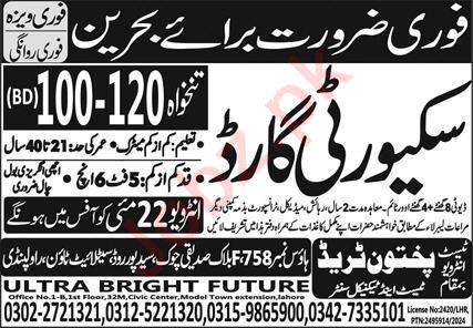 Latest Ultra Bright Future Overseas Employment Permotor Security Posts Bahrain 2025