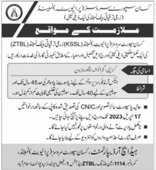 Kisan Support Services Pvt Limited jobs advertisement dated about 2 April 2023 in daily Jang Newspaper invites application for the vacant post of security guard in Islamabad, islamabad Islamabad Pakistan. Educational qualifications required Middle etc.