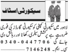 Security Company invites applications for job positions advertised in daily Jang dated 21 May 2024 for following vacancies in Lahore, lahore Punjab Pakistan.