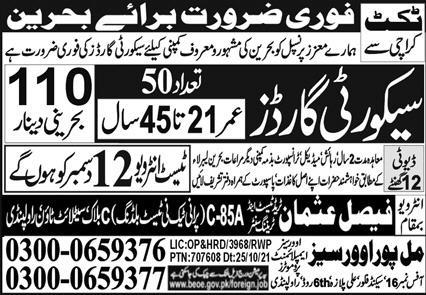 Latest Malpur Overseas Employment Corporation Security Posts Bahrain 2025