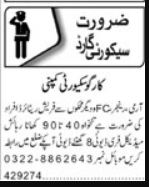 Security Company jobs advertisement dated about 9 November 2024 in daily Roznama 92 News Newspaper invites application for the vacant post of fc guard, retired army guard, security guard and rangers guard in Lahore, lahore Punjab Pakistan. Preferred Education is Matric, Intermediate and Middle etc.