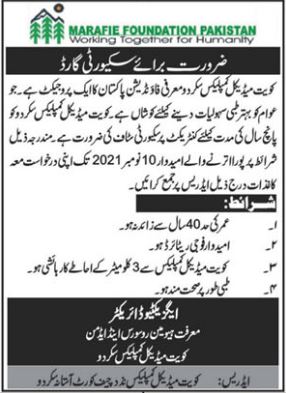 Vacancies in Marafie Foundation Pakistan Advertisement October 2021
