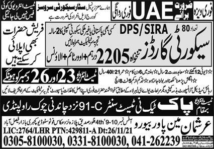 Vacancies in Arshman Manpower Bureau Advertisement December 2021