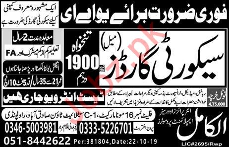 Apply as per details in job advertisement. Login to view further details of how to apply via https://www.jobz.pk online.