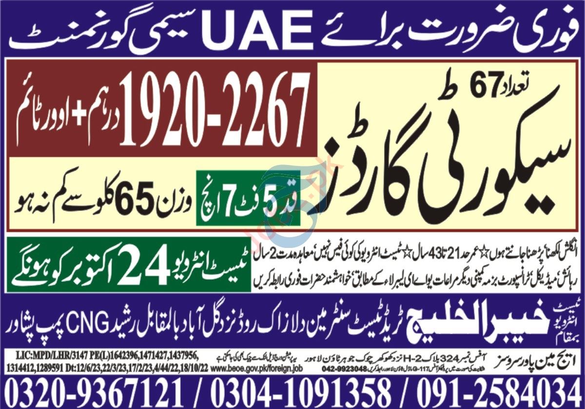 Vacant posts including security guard are announced in Edge Manpower Services Abu Dhabi, abu dhabi UAE as per 22 October 2023 advertisement in daily Aaj Newspaper. Candidates with Matric and Intermediate etc. educational background will be preferred.