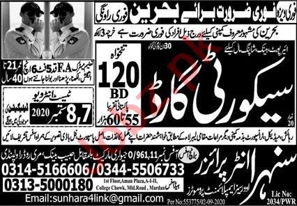 Latest Sunehra Enterprises Overseas Employment Security Posts Bahrain 2025
