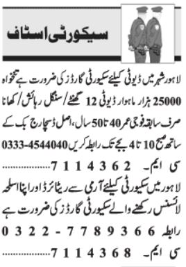 Security Company Lahore, lahore Punjab Pakistan invites applications from eligible candidates for the post of security guard and security officer as per advertisement of March 9, 2022 published in daily Jang Newspaper. Candidates with Middle, Intermediate and Matric etc. educational background will be preferred.