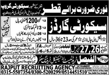 Rajput Trade Test Center invites applications for job positions advertised in daily Express dated 23 April 2022 for following vacancies in Qatar, qatar Qatar.