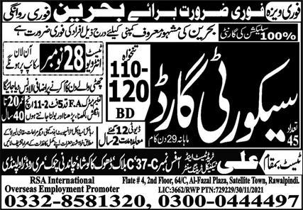 Ali Trade Test & Training Center jobs advertisement dated about 26 November 2022 in daily Express Newspaper invites application for the vacant post of security guard and security staff in Bahrain, bahrain Bahrain. Intermediate and Matric etc. educational qualification will be preferred.