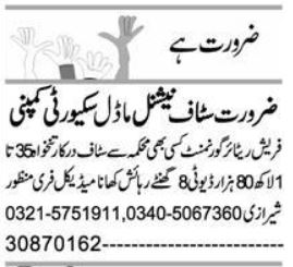 Latest Security jobs and others Classifieds jobs in Security Company closing date is around February 29, 2024, see exact from ad. Read complete ad online to know how to apply on latest Security Company job opportunities. Some jobs in Security Company may require skills like Security. During job medical, accommodation and food facility is available.