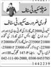 Vacant posts including security guard and security supervisor are announced in Security Company Lahore, lahore Punjab Pakistan as per 14 April 2022 advertisement in daily Dunya Newspaper. Educational qualifications required Intermediate, Middle and Matric etc.