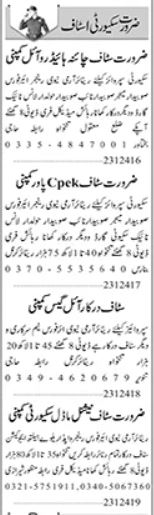 Security Company is looking for candidates for following posts as per job advertisement published in daily Dunya Newspaper of January 23, 2024 for location Karachi, karachi Sindh Pakistan: