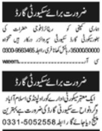 Security Company is looking for candidates for following posts as per job advertisement published in daily Kawish Newspaper of March 13, 2025 for location Islamabad, rawalpindi Islamabad Pakistan: