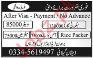Vacancies in Burhan Trade and Travel Advertisement January 2019