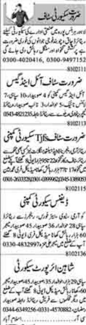 Latest Security Company Security Posts Lahore 2025