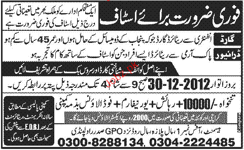 Apply as per details in job advertisement. Login to view further details of how to apply via https://www.jobz.pk online.