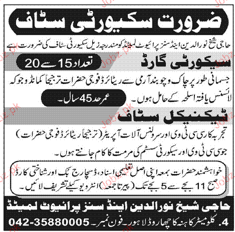 Latest Private Company Security Posts Lahore 2025