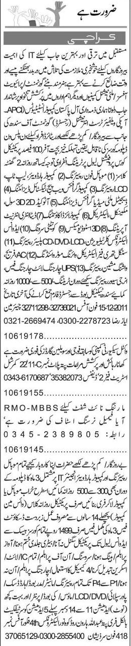 Apply as per details in job advertisement. Login to view further details of how to apply via https://www.jobz.pk online.