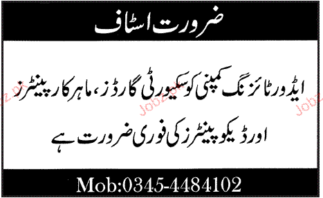 Security Guards, Carpenter and Deco Painter Required