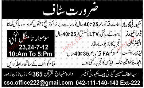 Security Guards, Drivers, Electricians Job Opportunity
