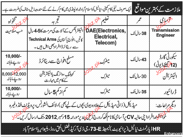 Apply as per details in job advertisement. Login to view further details of how to apply via https://www.jobz.pk online.