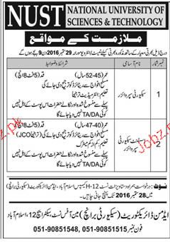 Security Guards and Security Supervisor are required in National University of Science and Technology in Islamabad.