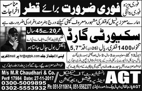 Latest AGT Institute of Technical & Professional Education Security Posts Qatar 2025