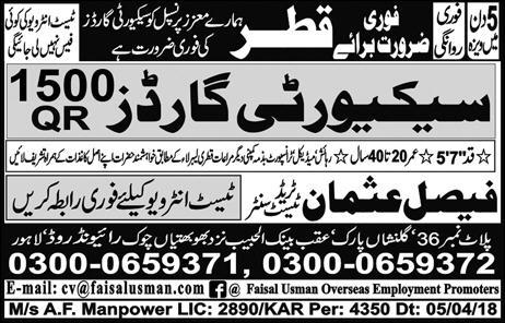 Latest Faisal Usman Overseas Employment Promoters Security Posts Qatar 2025
