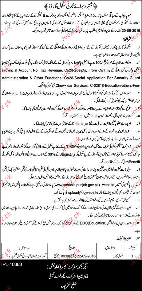 Latest Government Security Posts Sheikhupura 2025