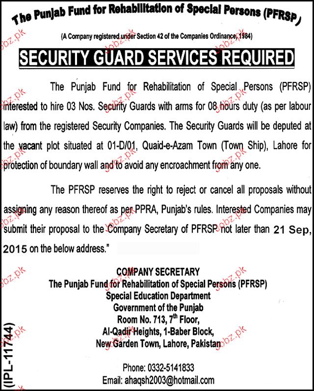 Security Guards Job In The Punjab Fund For Rehabilitation