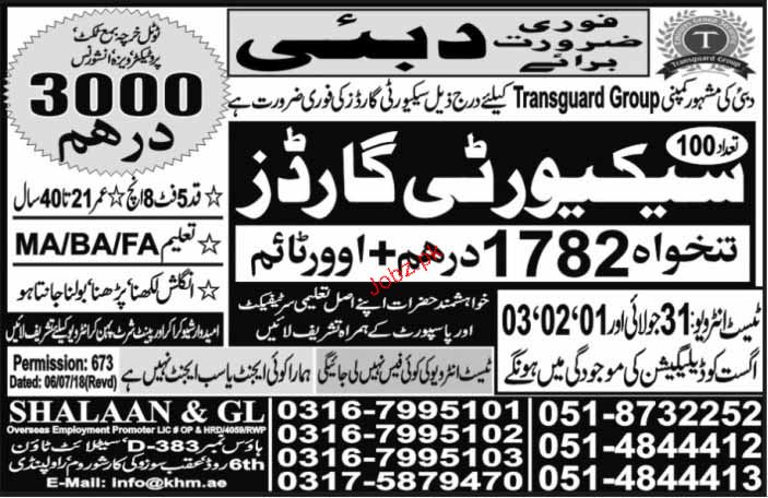 Latest SHALAAN & GL Overseas Employment Promoters Security Posts Dubai 2025